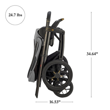 • Stroller dimensions when closed: 21.65" L x 35.4" W x 16.9-17.5"D