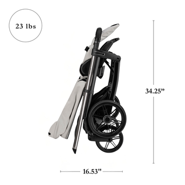 • Stroller dimensions when closed: 20.3" L x 34.25" W x 15.9-16.5"D
